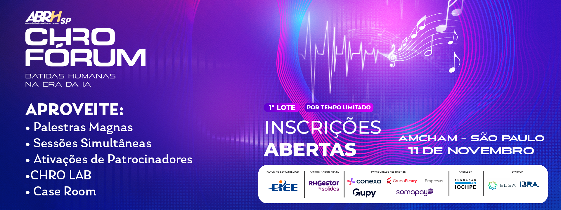O CHRO Fórum, promovido pela ABRH-SP, se consolida como uma das principais iniciativas de liderança voltadas a profissionais de Recursos Humanos. Em 5ª edição, o evento que será realizado no dia 11 de novembro, no espaço de eventos da Amcham, em São Paulo, traz como tema central “Batidas humanas na era da IA”. O primeiro lote de inscrições está disponível até 30/10 para associados e não associados da maior comunidade de Recursos Humanos do Brasil. Os palestrantes confirmados começam a ser anunciados esta semana.